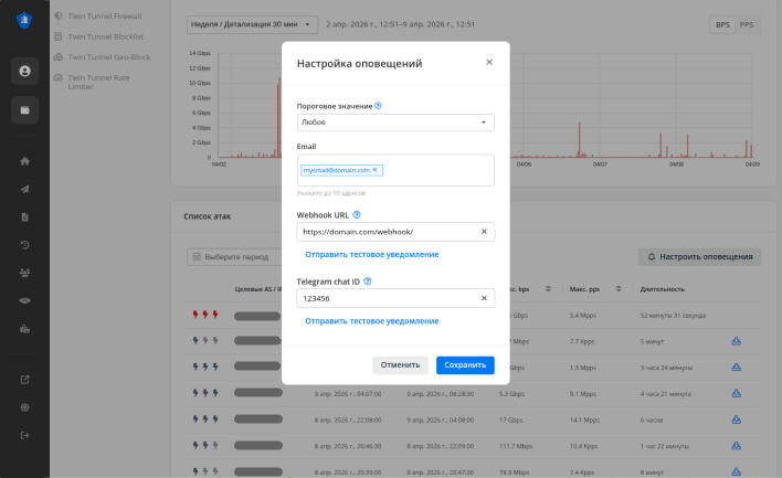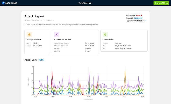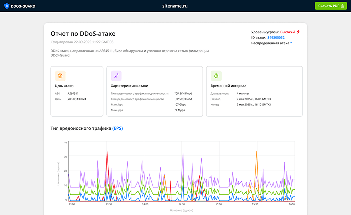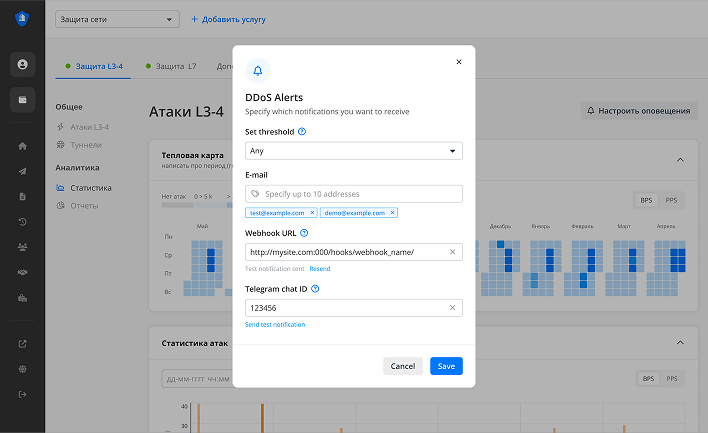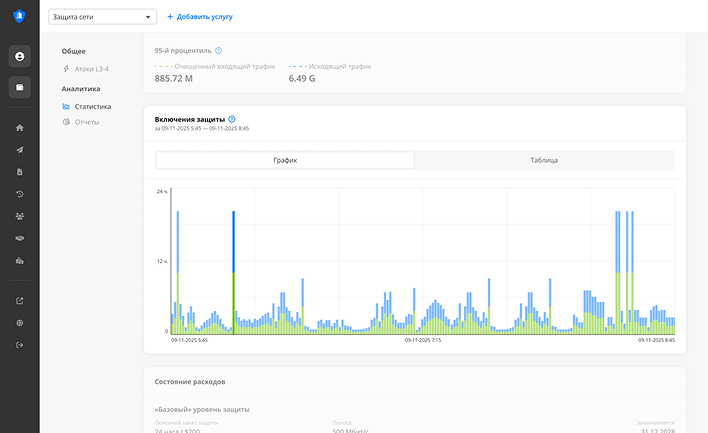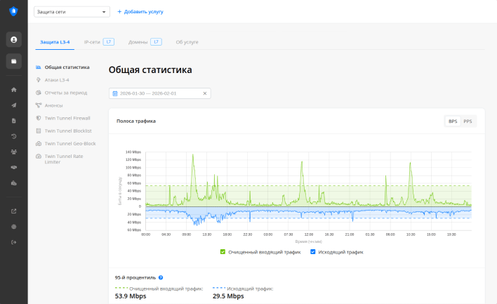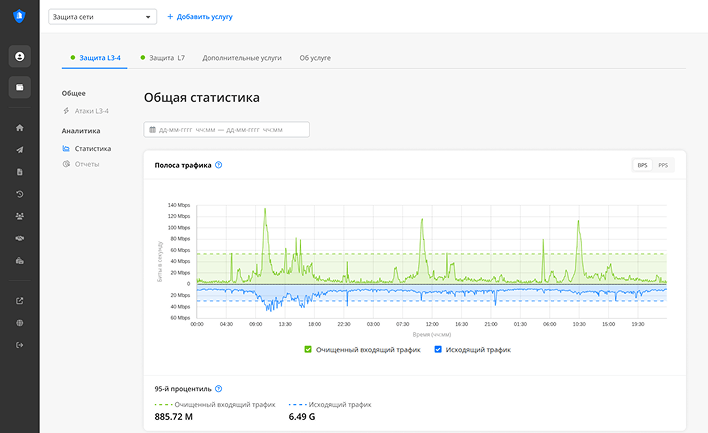 Основные показатели трафика и доступности вашего ресурса, статистика DDoS-атак и аномалий