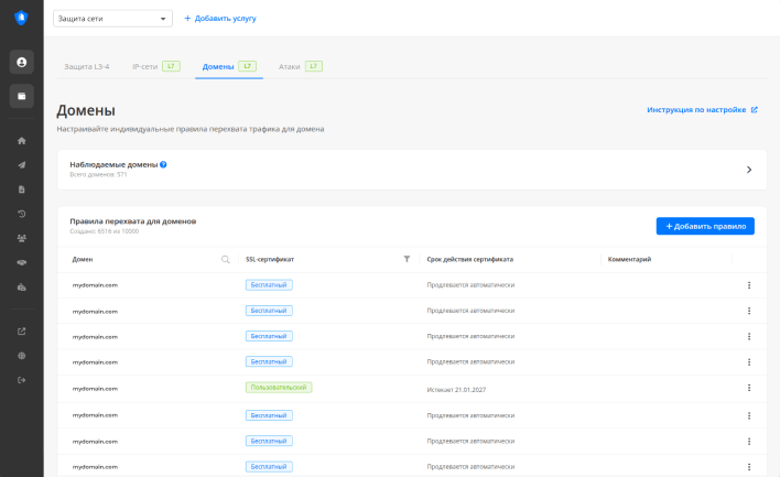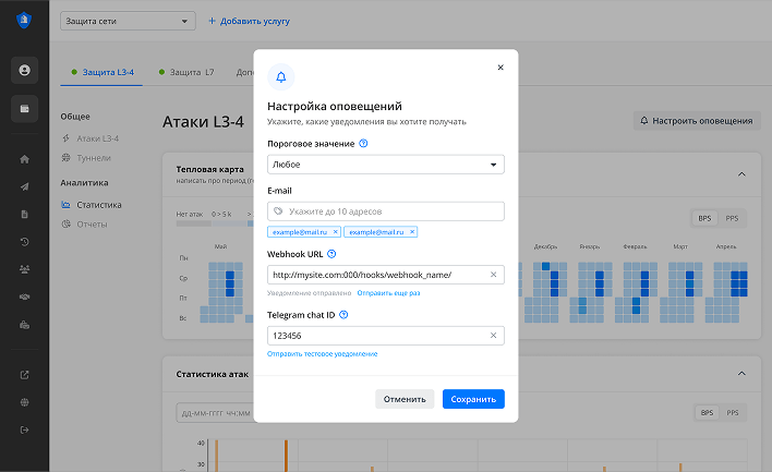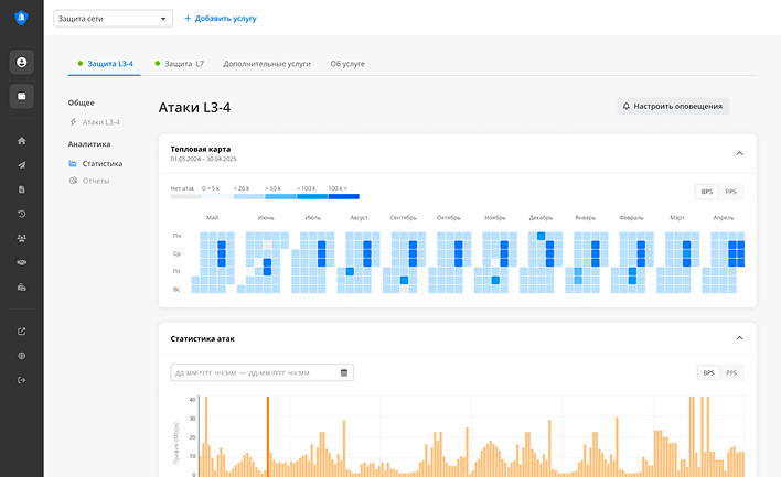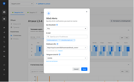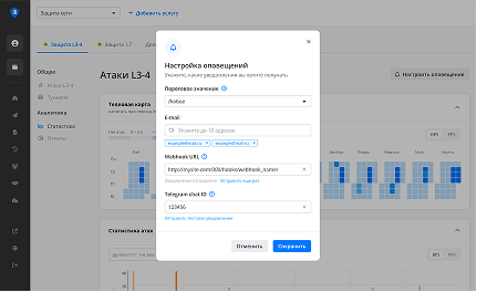 Настраивайте защиту от DDoS-атак, получайте статистику в реальном времени и управляйте трафиком прямо в браузере — с ноутбука, телефона или планшета